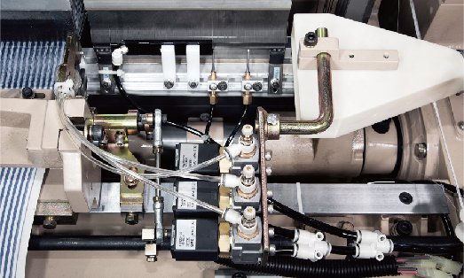 針對特殊需求,可選氣動折入邊裝置,能實現(xiàn)高速運轉(zhuǎn)下進行穩(wěn)定地折入緯紗,易損件少,便于維護保養(yǎng)。