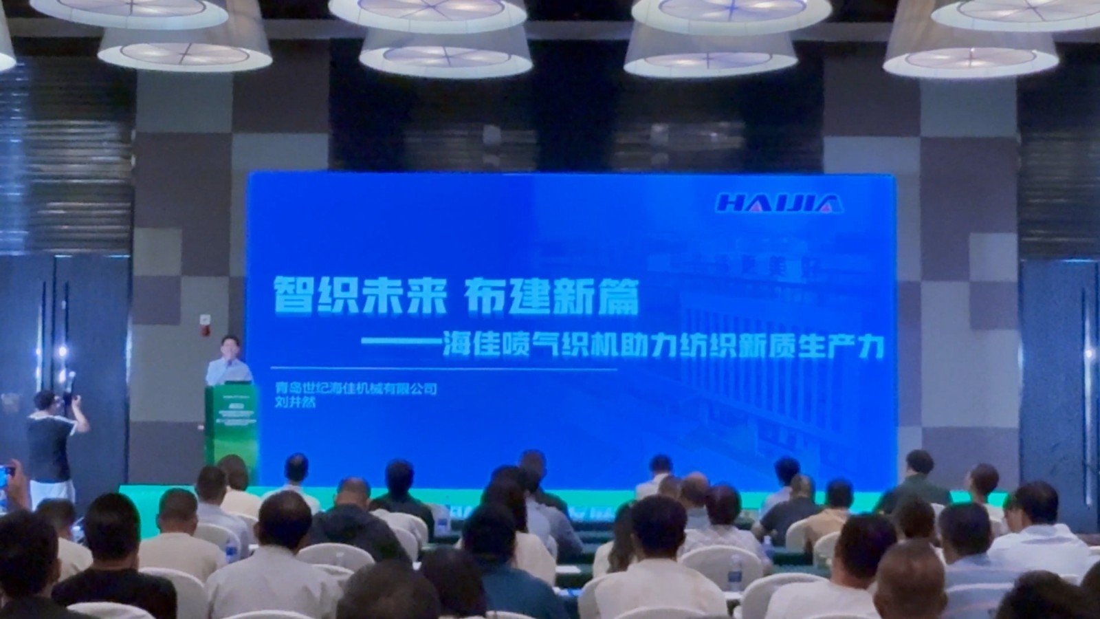 海佳集團總經理劉井然出席會議,并作企業(yè)及噴氣織機產品推介報告
